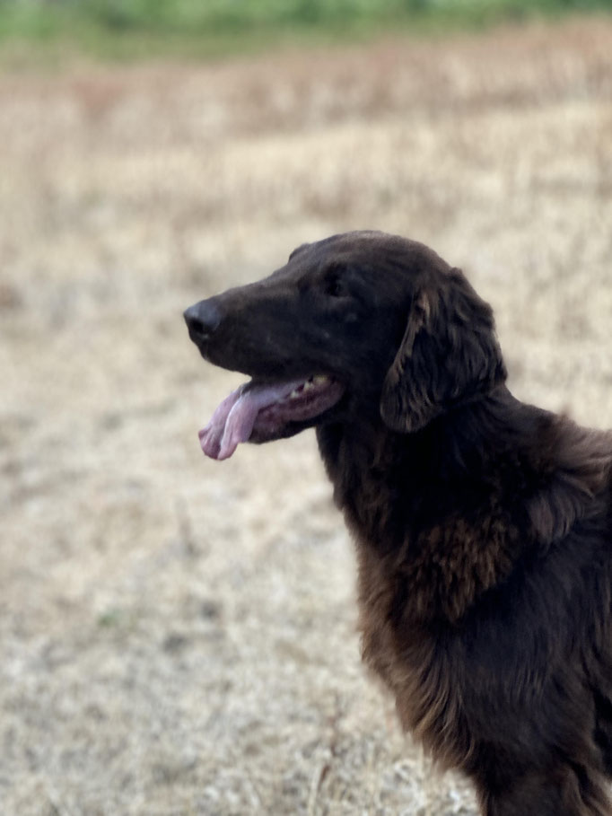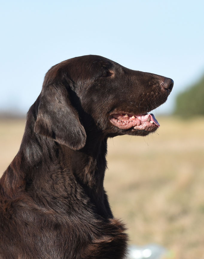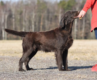 My goal is to breed Flatcoats with a strong will to work, good trainability, sound nerves, and appearance true to the breed standard.
